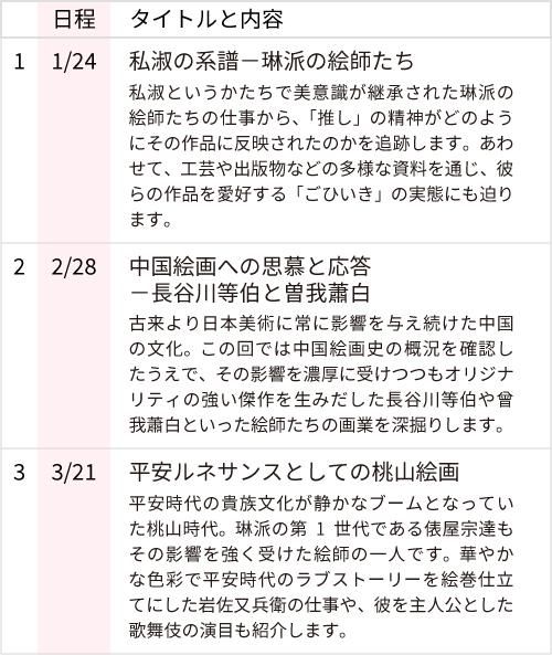 この講座では美術史上の名作を生み出してきた桃山・江戸時代の絵師たちにスポットを当て、それぞれが「推し」とした絵画や絵師、およびそのリスペクトが反映された作品を読み解きます。